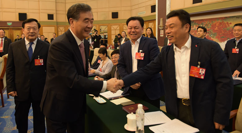 中共中央政治局常委、全國(guó)政協(xié)主席汪洋在第十二屆全國(guó)人大四次會(huì)議期間親切接見全國(guó)人大代表黃作興。