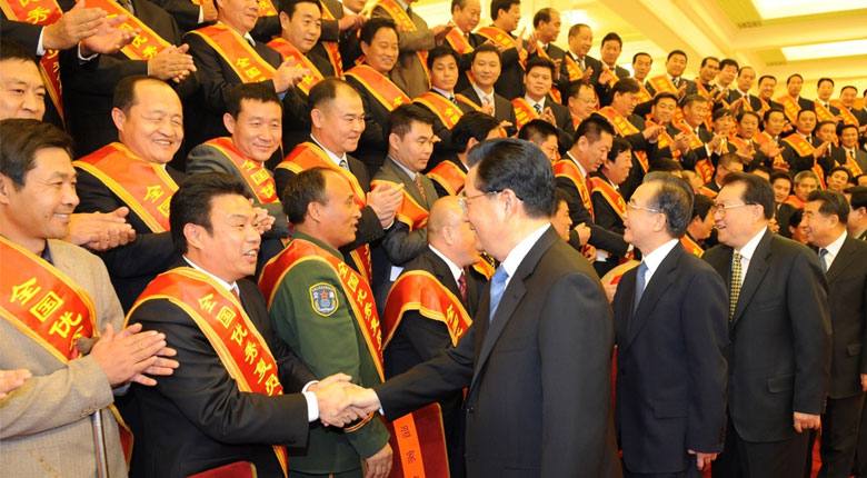 2009年11月25日, 胡錦濤、溫家寶等中央領(lǐng)導(dǎo)親切會(huì)見受表彰的全國(guó)優(yōu)秀復(fù)員退伍軍人黃作興并親切握手。