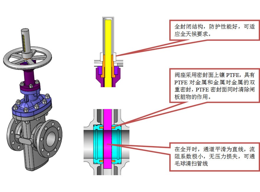 自清潔功能。閥門開關(guān)時,閥座圈能自動清潔閘板兩側(cè);