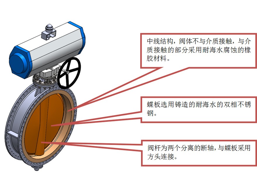 中線襯膠結(jié)構(gòu),閥門的操作力矩小,氣動執(zhí)行機(jī)構(gòu)操作,動作迅速;