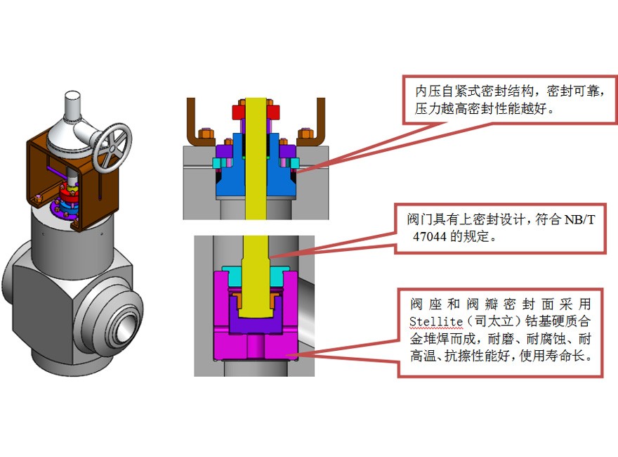 閥座和閥瓣密封面采用Stellite(司太立)鈷基硬質(zhì)合金堆焊而成,耐磨、耐腐蝕、耐高溫、抗擦性能好,使用壽命長;