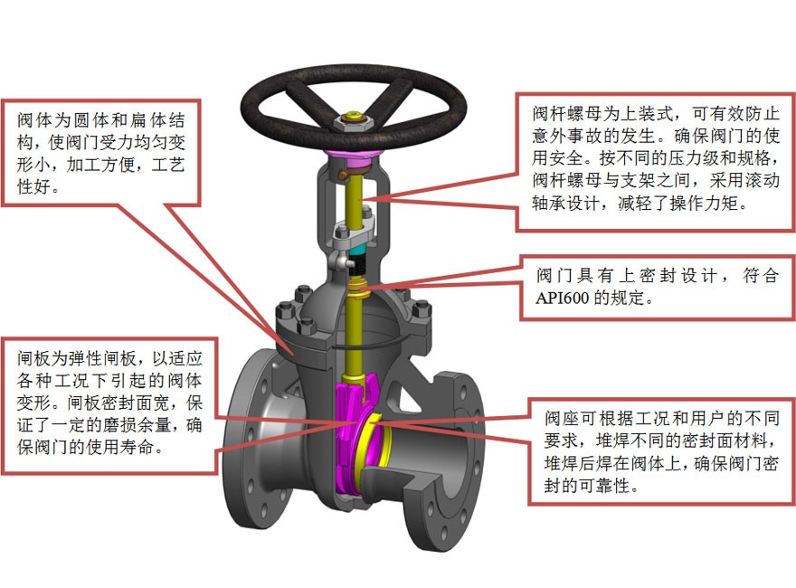 閥體為圓體和扁體結(jié)構(gòu),使閥門(mén)受力均勻變形小,加工方便,工藝性好;