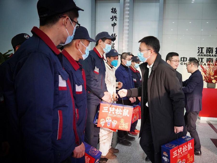 2022年1月7日下午,在新春來(lái)臨之際,龍灣區(qū)委書記周一富、區(qū)統(tǒng)戰(zhàn)部部長(zhǎng)鄒錦雷、副區(qū)長(zhǎng)董建樹,在區(qū)總工會(huì)副主席陳玉剛的陪同下,蒞臨江南閥門公司走訪慰問一線員工,為他們送去溫馨的祝福,并向全體員工致以新春?jiǎn)柡颉?/p>